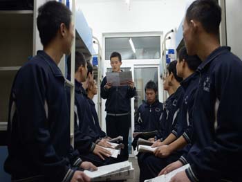 十八大召开过程中,国防生每天利用晚间课余时间,以班级、区队为单位组织了读报和探讨学习活动。及时了解解放军报、武警报关于十八大的相关报道,并召开主题班会,结合国防生身份和职责实际,探讨如何投身强素质做贡献的实际行动中去,贯彻落实好十八大精神。国防生一致表示,一定要牢记职责使命,坚定理想信念,以优异的专业成绩和军政素质,交上一分满意的答卷。