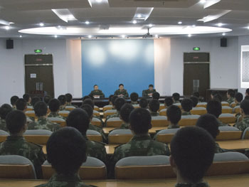 王燕令干事在总结中首先对同学们正式成为武警国防生的表示祝贺,并向大家介绍了国防奖学金发放的相关政策和流程,对大家提出了具体要求,希望大家牢记肩负的使命和担当,充分利用地方高校的教学资源优势,加强自身文化知识水平学习;不忘刻苦训练,夯实军政素质,养成良好的组织纪律意识和责任意识,树立我们辽大国防生的良好形象。